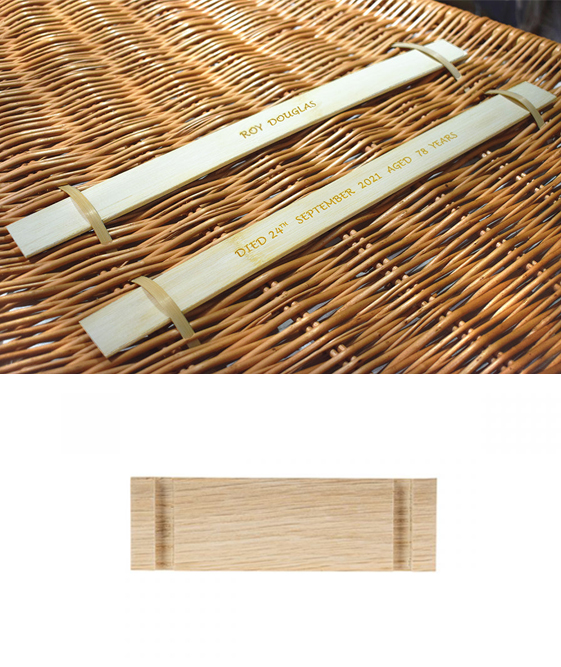 Sustainable nameplate made out of natural materials, type of material (bamboo or wood) is dependent on the coffin.